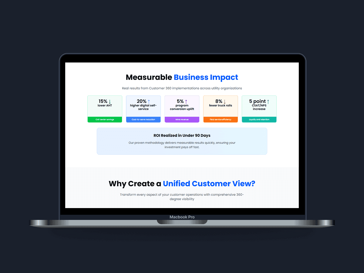 The utility solutions microsite helped the team validate their market hypothesis fast. The modular WordPress system. HubSpot integrations, and AI assisted content exploration reduced delivery time and improved clarity.